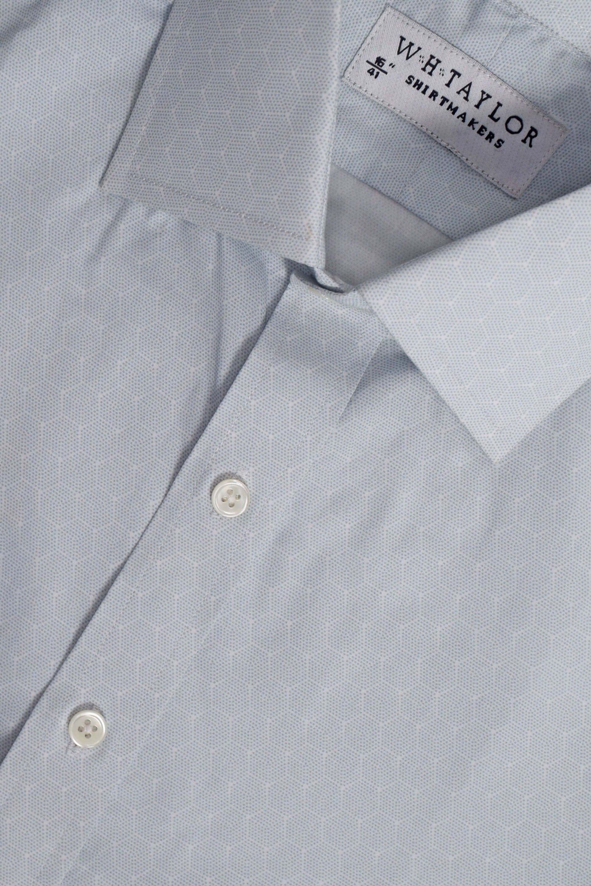 The Blue Beehive Pattern Men's Bespoke Shirt offers a distinctive blend of refinement and craftsmanship. Tailored precisely to your measurements, its intricate beehive design in soothing blue tones delivers understated elegance. Perfect for the gentleman seeking a sophisticated shirt that stands out with subtle complexity.