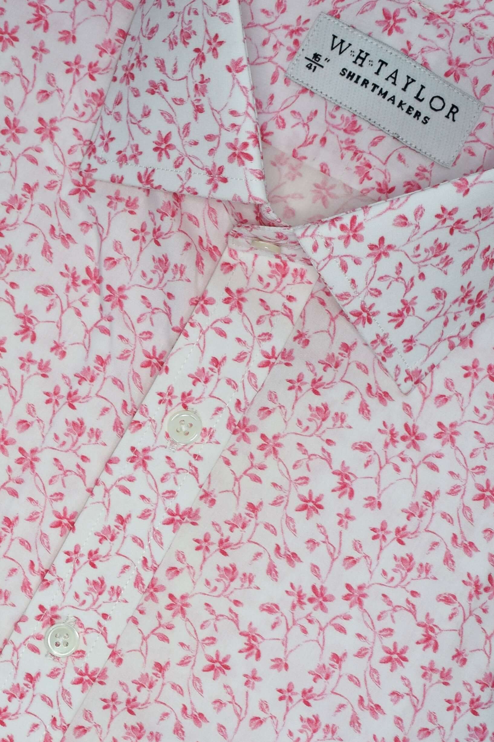 Command attention with the Small Red Floral Pattern Men's Bespoke Shirt, expertly tailored to your unique measurements. Its vibrant pink floral design breaks conventions, adding a daring burst of colour and personality to your wardrobe. Perfect for those who boldly redefine classic style with fearless elegance.